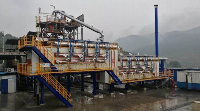 工藝流程:采用熱解技術外部加熱形式,將物料加熱至300~500℃,含油污泥中的水、油品等在密閉無氧空間中蒸發(fā)析出,經(jīng)過冷凝系統(tǒng)后使揮發(fā)物凝結,在通過油水分離裝置分離出油品,油品經(jīng)過加工后出售。產(chǎn)出的不凝氣可作為補充燃料使用。